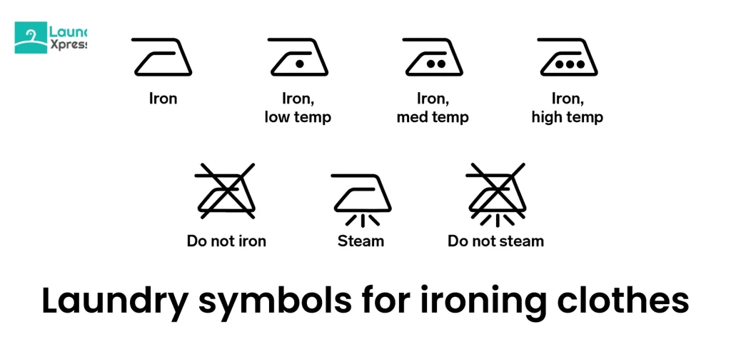 - Crossed out: Do not iron.